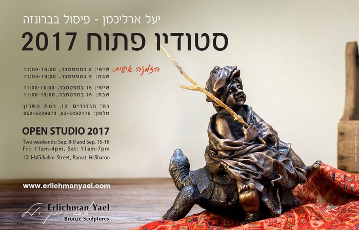 Open Studio 2017 Yael Erlichman / Yael Erlichmans Studio08/09/2017 to - 16/09/2017 Translated using Google translate. location - Yael Erlichmans Studio הגדודים 12 רמת השרון