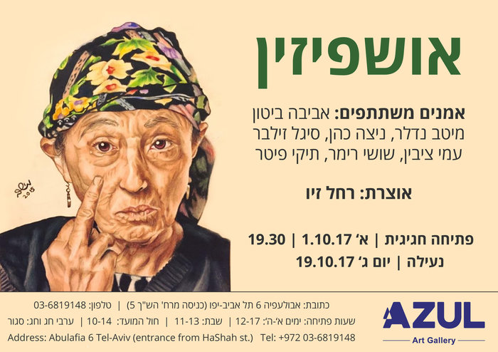 Ushipizin / Azul Gallery01/10/2017 to - 19/10/2017 Translated using Google translate. location - Azul Gallery פלורנטין תל אביב, רח' אבולעפיה 6 (כניסה מרחוב השך)