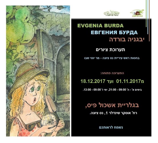 DRAWINGS OF EVGENIA BURDA / Eshkol Pais Gallery, Ness Ziona01/11/2017 to - 18/12/2017 Translated using Google translate. location - Eshkol Pais Gallery, Ness Ziona גלריית אשכול פיס נס ציונה, רח' אוסקר שינדלר 1, נס ציונה.