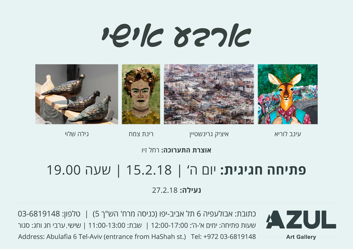 Personal Four / Azul Gallery15/02/2018 to - 27/02/2018 Translated using Google translate. location - Azul Gallery כתובת : אבולעפיה 6 ת"א (כניסה מרח' הש"ך) קומה א'