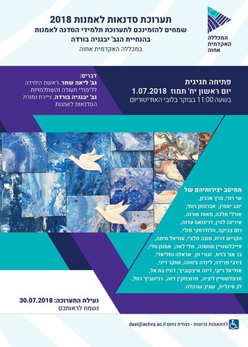 Exhibition of art workshops 2018, moderated by Mrs. Evgenia Burda at Achva Academic College / Achva Academic College, Auditorium13/06/2018 to - 18/08/2018 Translated using Google translate. location - Achva Academic College, Auditorium כתובת המכללה: ד.נ שקמים 7980400.