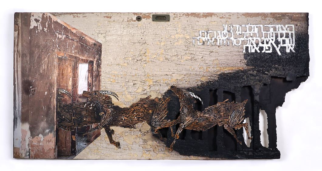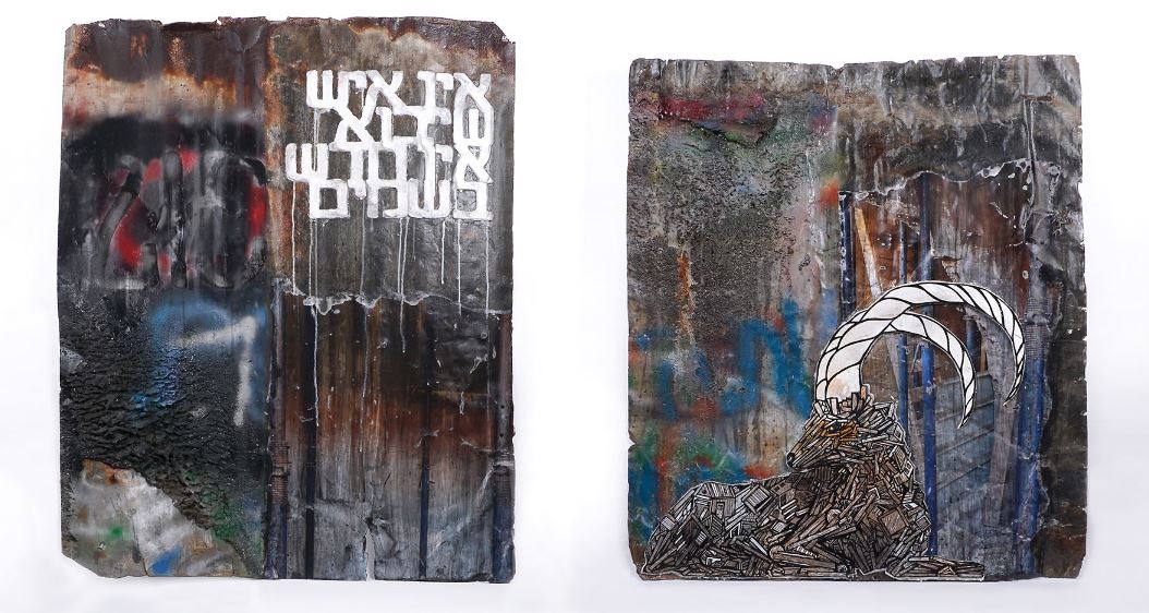Curator: Hagar Bril The places that inspired the new exhibition by Dede and Nitzan Mintz cannot be seen today. During the last year, leading up to the exhibition, the artists roamed through old buildings scheduled for demolition all around Tel Aviv. They made their way into ruins, some of which had been closed for decades, and some that had recently been locked: Beit Shlush, Beit HaRav Kook, Ishmaeloff Hotel on the corner of Yavne St. and Montefiore St., the house on Engel 9, Rothschild 12 and others. All of which are located in the heart of the city's most central and desirable neighbourhoods, neighbourhoods that have undergone gentrification and accelerated price increases years ago, which gradually pushed out their residents in favour of luxury towers and boutique hotels. These places were the last vestiges of an old city, buildings that remained empty due to a conflict between residents or inheritance struggles, and served as architectural monuments. With the opening of the exhibition today, all these structures are in various processes of renovation, preservation, demolition or reconstruction. Some of them were completely shut and sealed, some surrounded by scaffolding and fences, others were demolished to the foundations and rebuilt to become another architectural gem that would help, elegantly, to move the residents to other places. From these neglected buildings, Dede and Nitzan Mintz collected pieces of life: doors, windows, kitchen shelves, wood and plastic coverings, metal plates, wallpaper and cabinet parts. Alongside the physical act of collection, historical research was also carried out: from rummaging into buildings’ files in the municipal archives, through conversations with the local residents, to stories sent to them through social networks; the artists collected every possible piece of information about the buildings they visited. As in a rescue operation, each of the objects that they chose to gather from the building bore a story, a memory and a historical significance that the artists saw right to save and preserve from the rubble. Each of them served as a platform for Dede's wooden animal paintings and the lyrics of Mintz's poems, which themselves are an inseparable part of Tel Aviv's urban landscape. The different techniques of the artists are deliberately resonating with the construction world: industrial paints, strong adhesives, plaster and cement mixtures. For each of the items, a work method was chosen to suit their unique character. Thus, in one work, a cover of electrical channels that was damaged in a fire went through another fire in the studio, while in a different work a synthetic mixture accelerates processes of distortion, swelling and dismantling a curved tin surface covered with rust. The artists seek to preserve the history of each of the objects they saved from the destroyed buildings, and to this end they decided to preserve their original color, and almost not to cover up the scraps, textures, tatters or previous graffiti on their surfaces. If and when they decided to paint, the colors were chosen to correspond with the original color of the doors, gates and shelves taken from the building. Sometimes additional elements appear in the works, such as old scraps of wallpaper, elevator buttons and electrical outlets. The direct connection between the object and its original location is also preserved by using photographs: While wandering around the destroyed buildings, Dede and Nitzan Mintz documented the desolate spaces, the crumbling walls and the neglected courtyards surrounding them. Some of these photos have been reprinted and repasted onto the objects, which now carry with them a visual reminder of the space that once contained them. In other cases, the photographs became stencil outlines. Thus, the original building environment reverberates its existence on the wood and metal surfaces by means of an image of wire coils that enclose the place, a panoramic view of a nearby construction site, an unkempt palm tree or wild-looking thistles in the yard. Indeed, the motif of vegetation grows and returns in many works in the exhibition: whether in the silhouette of the ricinus plant, in the silhouette of thistles or in the palm tree that no one has cared for in decades. The dense and wild vegetation is the first outward sign of the abandonment: no one bothers to cultivate the garden surrounding the house, and nature finds its way to go feral, emerge from the cracks, and take control of man's work. The course of action taken by the artists is one that seeks to preserve the original materials they found, without altering their nature, shape and characteristics. In this way, non-destructive tests, which gave the exhibition its title, are also carried out. Non-destructive tests exist in the field of construction as well as in medicine and even art, and they constitute a complex of review and testing technologies that do not materially alter the object of the test. For example, sound waves are used to detect changes in the density of building materials, or unabsorbed fluids are inserted into different surfaces to detect and mark cracks. Dede and Nitzan's unique work process, which preserves and perpetuates the existence of these old houses, opens up questions and queries about the urban environment that was - and is not. The use of objects found in abandoned buildings raises thoughts about the historical urban space, about the rapid and drastic changes that this space goes through, and about the social, political and economic implications that accompany these changes. This is an attempt to preserve the memory of a place that was once a home - both in the literal and the metaphoric sense, the memory of a childhood landscape and a familiar and inviting environment. Dede and Nitzan Mintz work all over the world, but were born and raised in Tel Aviv and live there today. As residents of the Tel Aviv, who see it as their home, the scale and the dizzying pac