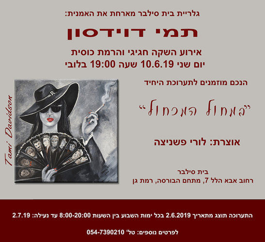 "The Dance of the Brush" / Silver House Gallery02/06/2019 to - 02/07/2019 Translated using Google translate. location - Silver House Gallery דרך אבא הלל סילבר 7, מתחם הבורסה, רמת גן. הכניסה חופשית כל ימות השבוע בין השעות 8:00-20:00 Time - 02/06/2019 to - 02/07/2019 Exhibition opening - 10/06/2019, שעה - 19:00 אירוע פתיחה חגיגי והרמת כוסית יתקיים בע"ה בלובי בית סילבר ביום שני 10.6.2019 שעה 19:00 |