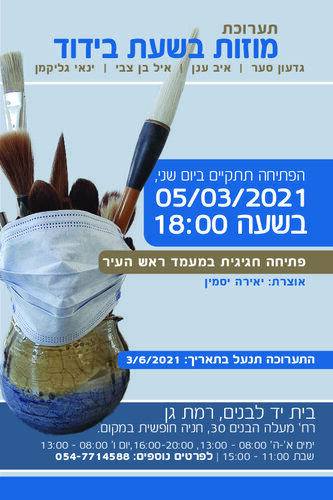 Muses during isolation / Beit Yad LaBanim, Ramat Gan03/05/2021 to - 03/06/2021 Exhibition of Muses during isolation, the artists: Gideon Saar, Yves Anan, Eyal Ben Zvi, Yanai Glickman. Festive opening in the first class Ramat Gan Municipality Mr. Carmel Shama HaCohen will be held on Monday 5/3/2021 at 18.00 Curator of the exhibition: Yaira yasmine Yad LaBanim House, Ramat Gan, 30 Maale HaBanim St., free parking on site. location - Beit Yad LaBanim, Ramat Gan מעלה הבנים 30, רמת גן Time - 03/05/2021 to - 03/06/2021 Exhibition opening - 03/05/2021, שעה - 18:00 |