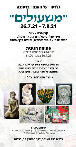 Pathways /26/07/2021 to - 07/08/2021 Gallery on the lake in Raanana " Mish'olim" 7.8.21 - 26.7.21 Curator of the exhibition: Rachel Ziv