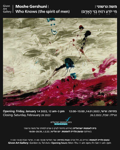 (Moshe Gershuni | Who Knows (the spirit of men / Givon Galleryטלפון - 03-5225427 14/01/2022 to - 26/02/2022 January 2022 will mark five years since the death of Moshe Gershuni. Following the accidental discovery of dozens of painted plates from Gershuni's historical installation, the gallery presents them for the first time in 42 years and focuses on two unique planes in his work: one from 1980 and the other from 2000. For one that was introduced in 1980, the plates disappeared as if they were not - and have not been shown since. Ethan, additional works will be unveiled for the first time to visitors to the exhibition at Givon Art Gallery. January 2022 will mark five years since the death of Moshe Gershuni. Following the accidental discovery of dozens of painted plates from an historical installation, the gallery presents them for the first time in 42 years.