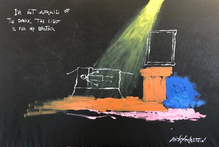 I'm Not Afraid of the Dark / Lemon Frame Gallery04/03/2022 to - 01/04/2022 The new solo exhibition by artist Micky Goldstein will open on Friday 04.3. Curator: Hagit Peleg Rotem. Micky Goldstein's world is a hot air balloon, wandering in time and space. The series of works in the exhibition tells a story in short pictures, scenes and anecdotes, from the realm of childhood, mixing together imagination and memory. His ideas stretch the boundaries of the room, the house, the world, and find a new order on the canvas. He refers to his childhood heroes - international comic artists such as Kino, Mordillo, and Herve - as his artistic forefathers. Motifs of comics enlarged to a grand scale and translated into oil on canvas, form his powerful, yet playful artistic language. The use of handwritten texts as part of the composition adds small reminders of the inner child in all of us. His sculptures seem like line drawings in the air, materialized from elements and motifs found in the paintings: A house, a flower, a bench, a toy car or a lamppost – come out of the picture and into life. The new exhibition, though created in difficult times of the pandemic, is an optimistic one. It derives from a peaceful, loving place; from the viewpoint of a mature artist, holding within him everyone and anything he has been along the way. When entering Goldstein's world, a magic door opens towards a bittersweet world of memories, from the days when the future was an open promise and anything was still possible. location - Lemon Frame Gallery כיכר פלומר 8, מבנה 36, נמל תל-אביב Time - 04/03/2022 to - 01/04/2022 Exhibition opening - 04/03/2022, שעה - 10:30 |