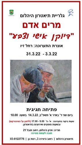 Personal Face and Colour / Hayahalom Theater Gallery03/03/2022 to - 31/03/2022 Miriam Adam, paints mainly from her photographs and various materials in pastel, oil, acrylic and more ... The paintings are in a free, expressive style, and depict figures and landscapes from different places in the world. In her works, a fleeting and expressive moment is clearly seen. Her paintings are built of layers of color, with a desire to create an ideological harmony. The human image is a central interest in Miriam's work, in which she finds interest in the facial expressions of anonymous people. She commemorates them with great empathy. Translated using Google translate. location - Hayahalom Theater Gallery תיאטרון היהלום | רחוב היצירה 3, רמת גן | 03-6122776 Time - 03/03/2022 to - 31/03/2022 Exhibition opening - 14/03/2022, שעה - 18:00 |