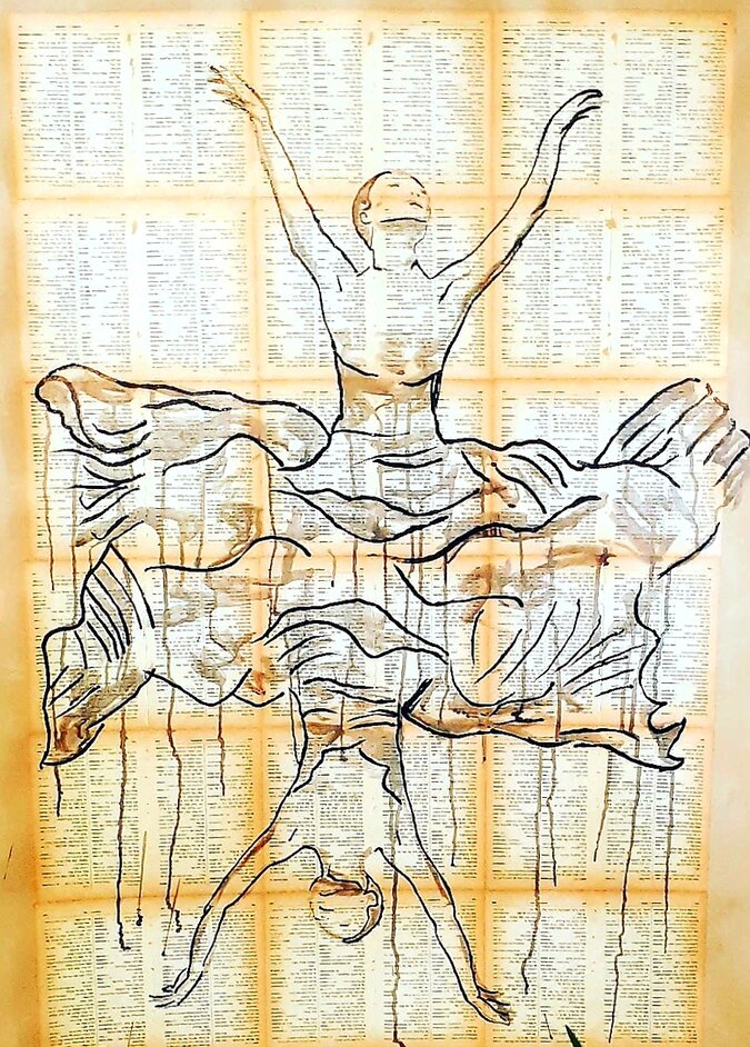 Some of the pages I use tell the story of the Jewish people as a whole or individually. I use secular or non-Rabbinic literature only, never religious texts. Since the books I use are secular, the  religious rules relating to the archiving and shelving of religious texts do not apply. The books and pages are beautiful and captivating in content, texture and type. The pages themselves lead me and help determine what I will draw while maintaining their own intrinsic features.