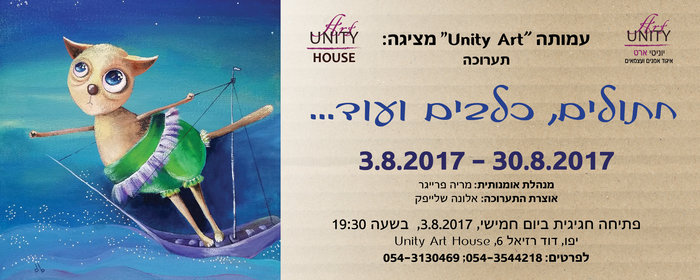 חתולים, כלבים, ינשופים ועוד / גלריה Unity Art03/08/2017 עד ה-30/08/2017 תערוכה "חתולים, כלבים, ינשופים ועוד..." בגלריה UNITY ART