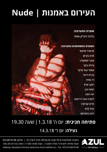 העירום באמנות / גלריה אסול18/03/2001 עד ה-18/03/2014 בתאריך 1.3 בשעה 19:30 תפתח בגלריה התערוכה הקבוצתית "עירום באמנות".