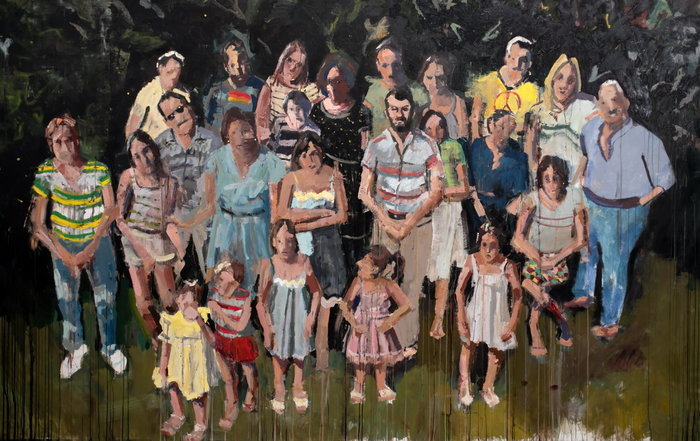 עניין משפחתי / גלריה זימאקטלפון - 972 3 6915060 13/09/2018 עד ה-25/10/2018 בחיבורו 'צייר החיים המודרניים' מגדיר שארל בודלר את הציור הראליסטי כציור המגיע ממקום מיידי, המעניק הנצחה מדויקת לרגע ספציפי. בדיוק רגע כזה מונצח בתערוכתו החדשה של האומן עידו מרקוס. הרגע - צהרי היום בשנת 1979, בוסטון, מסצ'וסטס. משפחת מרקוס מתכנסת לצילום משפחתי בחצר הבית, רגע לפני חזרתם לארץ אחרי שהות בת 7 שנים בארצות הברית. בשל לזווית הגבוהה ממנו צולם הצילום נוצר עיוות משונה בצילום. ארבעים שנה אחרי שצולם מצא עידו מרקוס את הצילום בבית הוריו. משהביט לראשונה בצילום המשפחתי, לא היה יכול להתעלם מקיומו, והחל לבחון את העיוות שנוצר וליצור עבודות רבות מתוך אותה תמונה משפחתית, עבודות השמות דגש על תנועה ומנוחה, אינדיבידואל בתוך קבוצה, פרט בודד אל מול תמונה משפחתית היוצרת מעין מוצר יחיד. התוצאה של עבודה זו היא התערוכה החדשה בה יוצג מיצב דחוס המאגד בתוכו רישומים, סקיצות צבע, קטעי וידאו, תבליטים וציורים. במרכז היצירה ציור משפחתי ענק ולצידו למעלה מ-50 מקטעים וציורים שנעשו לפני ותוך כדי העבודה על הציור. הצופה נחשף כך לתהליך העבודה של האמן שנותן לנו הצצה דרך מעין קליידוסקופ לבחירות השונות ודרכי ההפשטה של אותו דימוי ראשוני, כאשר הדמויות בציור נעות בין דרגות הפשטה שונות וכמו כן על רצף של גודל ושל חווית הצופה ביחס אליהן. בעצם עבודת הציור החומרי מחזיר מרקוס לחיים את הדמויות המשפחתיות, שכמו קפאו בזמן באותו רגע בסתיו 1979. מרקוס: "ציירתי במשך תקופה ארוכה, ובמהלכה הרבה דברים השתנו, דמויות זזו, חולצות נצבעו בצבעים שונים והקומפוזיציה זזה והשתנתה כול חודש כאשר הצורה והמפגש בין הדמויות הוא הדבר אשר העסיק אותי לאורך זמן רב. שאלות על רמת ההפשטה וניסיון לייצג הבעת פנים מבלי להיכנס לפרוט ייתר. משקל רב הושם על איזון ויצירת טווח רחב אשר מלכד את הדמויות ומאידך נותן לכול אחת את מקומה, אני מכיר את כול הדמויות - יודע מה קרה להם מאז 1979, חלקם כבר לא איתנו - וזה השפיע לעיתים על הדרך בה הם צוירו, כאשר הדמיון והזיכרון היוו חלק משמעותי בתהליך הציור". עידו מרקוס, יליד 1979 סיים בהצטיינות את לימודיו במדרשה לאמנות ב2008 ועלה על מפת האמנות הישראלית ב2013 כאשר מיצב ציור גדול ממדים פרי יצירתו נמכר בשלמותו לאספן יחיד. מאז סיום לימודיו הציג תערוכות יחיד בארץ ובח"ול ומקיים שיתופי פעולה עם מוזיקאים ואמנים מתחומים שונים וכמו כן אוצר תערוכות ואחד ממקימי בית הספר לאמנות הנביאים חדר עבודה/חיפה. בעבודותיו מגיחות דרישות שלום מציירי עבר ביניהם ולאסקז, אנסור, סזאן ורייזמן הישראלי, שפעלו בין קלאסיקה להפשטה, בין ריאליזם לאקספרסיוניזם. אוצר התערוכה - ירון הרמתי מיקום - גלריה זימאק זמנים - 13/09/2018 עד ה-25/10/2018 פתיחת התערוכה - 13/09/2018, שעה - 20:00 |