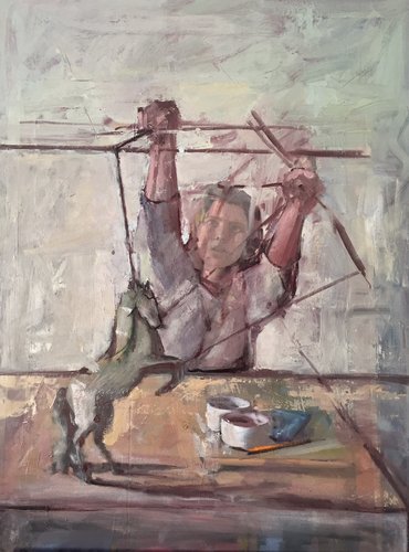 מצבים - אן בן-אור / גלריה רוטשילד אמנותטלפון - +972 77 5020484 11/10/2018 עד ה-17/11/2018 אן בן אור - מצבים אן בן אור היא ציירת. בכניסה לסטודיו שלה בדרום תל אביב עומדות יצירותיה נשענות אל הקיר כשהמסגרת העיוורת פונה אל הצופה. היא מוציאה את הציורים זה אחר זה ולאט לאט מתחוורת התמונה השלמה. אן בן אור מקיימת דו-שיח עם חלל הסטודיו, עם הארכיטקטורה של ביתה ועם האורבניזם החיצוני. בסצינה המצויירת לפנינו "עיר בתוך חדר" נראים זוג אנשים ישובים ליד שולחן, פניהם מוסתרים. על הקיר תלויה תמונה או אולי ציור של הבניינים מחוץ לחלל הסטודיו, התמונה מודבקת על הבד של הציור. על הרצפה משתקף החלון המסורג של הסטודיו, החלל הפנימי והחיצוני משתלבים זה בזה. בן אור ממשיכה להראות לי ציורים נוספים. בציור "טריפטיך" דמות נשית יושבת על כסא כשידיה פרושות לצדדים ויד אחת נשענת על השולחן שעליו טבע דומם; כד, כוס ודלועית. מאחוריה, קיר מחולק לשלושה חלקים ועליו ציור קיר; צורות המזכירות מבנים ועצים, ובאמצע סצינה של גדי היושב באחו . עבודותיה של אן בן אור מבוססות על עולם ריאליסטי אך היא אינה מנסה לתאר את המציאות אלא להעביר אל הצופה תחושות, רגשות והלכי נפש פנימיים המתעוררים בה בעקבות המפגש בינה לבין מושא הציור. אין בציור נרטיב אלא מצבים. לדברי האמנית "כל העבודה שלי היא ניסיון לא להירדם בתוך המובן מאליו, אלא ליצור משהו שיכול לשנות את האופן שבו אנו מסתכלים על מה שמסביבנו. עבורי פעולת האמנות היא החופש ליצור את הגבולות, את ההפרדות, ולגלות אותם מחדש. הם אלה שמאפשרים את החיים בכלל ואת עבודת האמנות בפרט. אני מחפשת כל העת להסתכל על מה שמסביבי ממקום אחר. לא ממקום שיודע. אני לא יודעת מה זה פרחים. מה זה אדם. מה זה המקום הזה. חונכנו לזהות את הדברים מלכתחילה מראש, בלי להתבונן באמת. אני מנסה לתת מקום לכל דבר, לראות מה שונה ומה דומה ולהעביר את תחושת הרגש. איך מעבירים זאת לציור? לא מעניין אותי להעביר את המציאות אחד לאחד. מעניין אותי מה קורה ביננו, ביני לבין הבד, ביני ובין מה שאני רואה. ההתבוננות היא המהותית, היא שמעוררת ומגרה בתהליך העבודה שלי. אין שיטה קבועה, לפעמים אני מתחילה מרישום, לפעמים מכתמי צבע, לפעמים אני חוזרת ורושמת על הצבע, מוחקת חלקים ומשנה, מתבוננת במודל חי, בגופי שלי, אני נעזרת לפעמים בצילומים, בזיכרון, בדימיון....עד שמשהו מתחיל לעבוד והציור מבטא איזושהי אמת שנמצאת מאחורי הדברים ומהדהדת בי". אן מציירת אנשים ובעיקר את בני משפחתה הקרובה כאשר הדמויות מוצגות במרחב הביתי שלהן. אחד הנושאים שאותם היא מרבה לצייר הוא השולחן שסביבו יושבות דמויות . זו לא ארוחה סביב השולחן, זוהי ישיבה של אנשים ליד שולחן. זו אינה ארוחה חד פעמית אלא התכנסות סביב שולחן, דבר שבשגרה; המשפחה מתכנסת או שזו קבוצת אנשים היושבת סביב השולחן. זו לא "הסעודה האחרונה", יצירה מן הידועות שבתולדות האמנות שאמנים כה רבים טיפלו בנושא הסמלי שלה. כאן אצל אן בן אור נושא זה לא נובע מהמקום הדתי אלא מהמקום של המרחב הביתי והמשפחתי. מה הוא אותו שולחן שמציף את הרגש של האמנית וגורם לה לחזור שוב ושוב על אותו נושא ולטפל בו מכל זווית אפשרית? השולחן המצוייר דומה מספיק לאותו שולחן המוכר לנו כדי לעורר בנו רושם שאנו אכן צופים בדבר מוכר, אך יחד עם זאת הוא חדש מספיק כדי ליצור בנו תחושה שונה כלפי האובייקט מכפי שציפינו במבט ראשון. אנו נדרשים כצופים ביצירה, לצאת מאיזור הנוחות שלנו ולהגיע למקום שבו אין הגדרה לדבר שבו אנו צופים. אבל אל לנו להרחיק מדי כי אז הרי נקרא לדבר שמולו אנו עומדים בשם חדש לחלוטין. חדר האוכל בו אנו מתבוננים, כשבמרכזו עומד השולחן כרעיון עיקרי, הוא למעשה הבמה שעליה חולקת האמנית את רגשותיה עם הסובבים סביב השולחן. בן אור בוחנת את תנועות הגוף של הדמויות, ואת ההתנהגות האנושית והחברתית דרך אחת מהפעולות הבסיסיות היום יומיות של ארוחה סביב שולחן. האוכל אינו הנושא המרכזי אלא מטונימיה למערכת יחסים בין בני אדם ויחסי כוחו