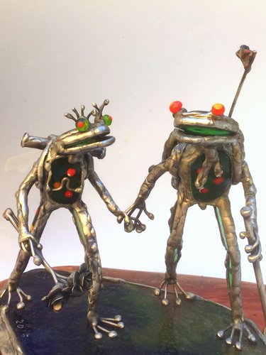 הומור של צפרדעים / גלריית הציפור הכחולה08/12/2018 עד ה-05/01/2019 עמנואל זוהר –הומור של צפרדעים פתיחה חגיגית: מוצ"ש 8.12.2018 בשעה 20:00 בגלריית הציפורה הכחולה רח' רוטשילד 75 פתח תקוה אוצרת :שרה רז יו"ר עמותת אמני פתח תקוה באחד הביקורים שלי בתערוכת צוות גמלאי צבא, פגשתי אמן שהקרין מיד מיוחדות- אכן הזוהר פרץ מדמותו של עמנואל זוהר. לפני שהתייחסתי ליצירתו פגשתי אדם ערכי ,שניסיון חייו רב הפעלים מקרין מכל מילה היוצאת מפיו. מתייחס בנוסטלגיה מלאת רגשות לימי ילדותו בפתח תקוה. הוא מספר את סיפור חכמת החיים שרכש ,בסיפורי ילדים מלאים משלים ומוסר השכל , תוך שהוא מנצל את כישוריו האמנותיים ויוצר ממלכת חיות מיניאטורות. ממלכה כזו שבה הוא מצליח להעביר מסרים חשובים כאלגוריה לחיי אדם. הוא מעביר את חוויות הנעורים שלו, ורואה בכך אפשרות יצירתית לספר את סיפוריו באמצעות דמויות קטנות וסימפטיות, עשויות זכוכית מותכת ובדיל, ולהמחיש דרכן מצבים אנושיים — חוויות, מסעות, אהבות, שאיפות, אכזבות ואפילו מעשי קונדס. עמנואל מצליח בכישרון רב לקחת חומרים קשים, תרתי משמע, בחומר ובאפיזודות של החיים וגורם להם להישמע לו להגמיש אותם ולעשותם זורמים ורכים. באמנות נהוג לעיתים להשתמש במושג "האנשה". האנשה היא פעולה של ייחוס תכונות אנושיות לדבר מה שאינו אנושי. חיות, חפצים ודמויות מדומיינות. עמנואל יצר את ממלכת הצפרדעים ולא סתם בחר את הצפרדע כמושא יצירתו, הוא הרעיף עליה כיד הדמיון הטובה עליו. בתרבויות השונות פעולת האנשה של צפרדעים , היתה לטקס קדוש. בתרבות המצרית הגיעה לדרגת אלילות כשהיתה אפילו אלת צפרדע חכאט. הצפרדע היתה לסמל פריון , במיתולוגיה היונית הצפרדע היא סמל חשוב של פוריות ומסמלת את מעגל המוות והתקומה מחדש .בתרבות האסיאתית מוצאים את הצפרדע כסמל של מזל, המיוצג עם כסף, זהב או מטבעות בפה. רוח הצפרדע צ'יינג-ואנג שנג קשורה לריפוי ומזל טוב בעסקים. בתרבות ההודית ,הצפרדע עומדת כחיה בעלת כוח המביא להצלחה, מיומנות ושינויים בחיים. באמזונס, יש כמה צפרדעים וקרפדות המייצרות הפרשות רעילות כדי להגן על עצמן מפני אויבים. הפרשות אלה גורמות להזיות בבני אדם ולכן הן חלק בלתי נפרד מהטקסים של האינדיאנים והשאמאנים. הפרשות מעור הצפרדע משמשות בתעשיית התרופות.. לצפרדע יש אצבעות גדולות, עור חלק ועיניים גדולות. לכן, יש לה כמה תכונות אנושיות. לכן, היא קשורה לעתים קרובות עם חוכמה וראייה רוחית. בתערוכה זו מוצגות עבודות מיניאטורות של בעלי חיים : צפרדעים נמלים צבים ינשופים דמויות מואנשות העושות כל מה שבני אדם עושים: ספורט ,מוסיקה, אהבה, רכיבה על אופנועים . חיות מואנשות המבטאות רגשות , יחסים וחכמת חיים. עמנואל שעסק בטיפוח ילדים ונערים מרקע קשה ,החל להתיך מתכת וזכוכית ולתת להם משמעות חדשה משמעות של מעגל חיים . הוא יוצר יצורים קטנים כמו נמלים ,הנתונים למרמס חזקים מהם , והוא מצליח לגרום להם להמריא מתחום מלאכת היד ולעשותם אמנות. עמנואל מפיח רוח ספורטיבית בנמלים כדי לחזק אותם אל מול פגעי החיים והוא יצר משחקים אולימפיים למעלה מ1000 נמלים משתתפים ביצירה אחת בה הן משמשות כספורטאיות, שופטות, קהל . הנמלים מצופות זהב כסף ונמלים שחורות מברזל. עמנואל מכניס נשמה בחומרים קשים, וגישתו המיוחדת לילדים קוראת למשפחות לבוא לחוות חוויה מיוחדת במינה שלא תשכח במהרה. עמותת אמני פתח תקוה מאחלת לעמנואל ביום הולדתו ה81 שפע בריאות שמחה והנאה והמשך יצירה פורה . אנו גאים לארח יצירה כה מופלאה בגלריית הציפור הכחולה ושמחים להחזיר בן פתח תקוה לעיר מכורתו לקבל אותו בין שורותינו כאמן חשוב, ולתת הזדמנות לקהל שוחר אמנות ליהנות מיצירתו. נעילה: 5.1.2019 האמן בפייסבוק: https://www.facebook.com/profile.php?id=100008214218631 https://www.facebook.com/artglassemanuelzohar שעות פתיחת הגלריה: שעות פתיחה: ימים שני שישי ושבת 11.00-13.00 ימים שלישי וחמישי 17.00-19.00 מיקום - גלריית הציפור הכחולה רוטשילד 75 פ"ת זמנים - 08/12/2018 עד ה-05/01/2019 פתיחת התערוכה - 08/12/2018 |