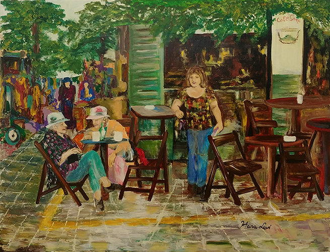 בבואות - תערוכת יחיד של האמנית חנה לוי / גלריית בית סילבר02/04/2018 עד ה-31/05/2019 אוצרת: לורי פשניצה חנה לוי נולדה בישראל בשנת 1950 בעיר יפו. נשואה 53 שנה לאלוף נעוריה, אמא ל- 5 בנות, 14 נכדים ושתי נינות. כל שנותיה עברו בעיר המחוברת תל אביב - יפו וגם כיום היא מתגוררת במתחם שרונה בלב ליבה של העיר האהובה עליה. חנה מציירת מגיל חמש. מין הסתם ירשה את הגנים מדודה מרטין מרקוביץ שהיה צייר ידוע. אביה היה צבעי ובבית היה שפע של צבעי שמן. אביה לימד אותה להכין צבע עם פיגמנט ושמן וככה החלה את מסלול הצביעה שלה. הציור מאז היווה חלק מרוחה ומנשמתה. גם כשעסקה במהלך חייה בניהול מערכת רפואית ובתחביבים, כמו תיאטרון וספורט - לא הניחה את המכחול ובכל עת פנויה המשיכה לצייר באופן אוטודידקטי. לימים סיימה לימודים בביה?ס לאומנויות ?רננים? בנווה צדק בהדרכתו של המורה לחיים מר צבי תדמור ז"ל והשתתפה בסדנאות אומן נוספות, לרבות, באגודת האמנים בראשון ציון בהדרכתו של דב קלמן וכן בסדנת אמן עם אבשלום עוקשי במכון אבני. חנה חברה גם באגודת האמנים יבנה ובאגודת האמנים בתל אביב. מעת לעת במשך שנים היא אף הדריכה בעצמה ציור ואמנות בבתי ספר שונים. חנה לוי מציירת באקריל ובשמן. סגנונה נוטה לריאליסטי אקספרסיבי ועם זאת במספר ציורים כמו הסידרה האקוורלית - הם רכים ומשרים רוגע. היא מקבלת השראה מתוך אפיזודות בחיי היומיום, לפעמים גם מפריים דרמתי בטלויזיה שנשאר חקוק במוחה, או משיחה בין שכנים. רגעי אושר וצחוק, מתערבלים ומתגבשים ואז היא ניגשת לבד שהמתין ושופכת עליו את התמונה שראתה בדמיונה. חנה לוי אוהבת לטייל בשכונות העיר האהובה עליה תל אביב יפו. בסמטאות היפות ובפרט נהנית מהאווירה בשכונת נווה צדק. המפגש שלה עם הנוף הוא מפגש של שייכות ומחויבות ולא של צופה מהצד. שייכות להיסטוריה של אבות אבותינו שנדדו כאן לפני אלפי שנים. היא מביטה פנימה לנפש האדם ומנסה לתפוס 'שוט' מהלך רוח ותנודה. לפעמים העין מציתה ומטיילת בשבילי הדמיון, בודה סיפור שמח או אפל וקודר בסבך הג'ונגל של החיים דאז, עורכת אנלוגיה בין תקופתנו לתקופות ההן ומנסה למצוא ביניהן קווי דמיון. בתערוכה מוצגות יצירות מסדרת הדמויות ומסדרת הנופים והסמטאות של העיר תל אביב. היא מוצאת שילוב מוצלח בין חדש לישן, בין דתות ואמונות שונות, בין בתי אוכל מסורתיים למסעדות שף נוצצות. מתחמי בילוי שוקקים וטיילת מרהיבה, הנמל והרובע העתיק. שוק הפשפשים המיוחד, המשלב את הישן עם החדש, כשמכל עבר נשמעת מוזיקה ואנשים מצטרפים בשירה. הכושר לחוש הזדהות עם הזולת והאהדה לרגשותיו התוו רישומים והפכו לתמונות מצוירות על גבי הבד, כמו ביצירת בית הקפה בשוק הפשפשים המוצגת בתערוכה. הנשים שוחחו וחנה הביטה בהן ודמיינה את תכן השיחה. תוך כדי גוללה לעצמה סיפור חיים שחוותה הדמות התקבל ציור שנוצר מנבכי ליבה, מזווית הראייה שלה, מקרביה ומתחושותיה. במשך השנים השתתפה חנה במספר רב של תערוכות יחיד ותערוכות קבוצתיות, ביניהן: 1994- גלריה תירוש יפו עם האוצרת אירית לוין. 2008 - שורשים בגלריה של עמליה ארבל. 2009 - בית סוקולוב "זוית אחרת"- אוצרת נורית טל טנא. 1999-2013 - סדנא לאמנות יבנה תערוכות קבוצתיות. 2013 - חסד אלוהי עם האוצרים אתי ופרדי פביאן. 2018 - שפייר בגרמניה"מגילה". אוצר רוני ראובן. 2018 - גלריה ספייס גן העיר עם ה אוצר איקי שובל. 2018 - האנגר 3 נמל תל אביב-אוצר איקי שובל . כמו באמצעות מקל הליכה, צועדת חנה בעזרת מכחולה בין שבילי הסיפור שמנתב דמיונה הפורה והעשיר בשילוב החיבור הרוחני שבהם ניחנה. היא מחדירה את הכוח, העוצמה והאופטימיות שטמונים בה בכישרון רב לתוך האובייקטים שבחרה לצייר בצבעים חמים ואנרגטיים. בכריזמה מיוחדת שמאפיינת אותה, היא סוחפת וסוחבת אותנו אל ציוריה עזי הצבע והרגש וכובשת את לב המתבונן בהם. כל היצירות בתערוכה מיועדות לרכישה. פרטים ליצירת קשר: טל' 050-5480488 לורי פשניצה אוצרת התערוכה מיקום - גלריית בית סילבר רחוב אבא הלל 7, מתחם הבורסה, רמת גן. הכניסה חופשית כל ימות השבו