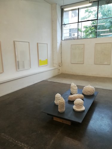 Curator: Daniella Talmor בתערוכה "הביטאט II" בונה שרונה הלמן סביבה המערבת ציור, רישום ופיסול. באמצעות שלוש טכניקות פלסטיות אלה, היא מנסה לבחון את מערכות היחסים הנרקמות בין צורות וקווים בדו ממד ובתלת ממד, לבדוק את המעברים ביניהן, ולהנכיח סוגים שונים של אינטראקציות וחיבורים בלתי אפשריים ביניהן. הבחירה של הלמן באלמנטים בסיסיים של קווים ישרים ומעוגלים, נובעת משאיפתה להפיך בהם חיים חדשים, ומחשבה חדשה. הממדים השונים, האינהרנטיים לתהליך היצירה שלה, הם חופש מחד גיסא, ותכנון מאידך גיסא. דרך השילוב ביניהם בוחנת כל עבודה את פוטנציאל ההתפתחות של הצורות והקווים במדיום שבו היא פועלת, ומקודדת את הסימנים המצטרפים לשפת היצירה. פעולה זו מתחילה שוב מבראשית בכל מדיום, ובדרך זו שומרת על האוטונומיות של המדיומים, מניחה להם לעמוד בפני עצמם, ולא דורשת ממדיום אחד לשרת או להיות כפוף למדיום אחר. את סדרת הרישומים החלה הלמן ליצור לאחר שביקרה בתערוכה הרטרוספקטיבית של האמנית האמריקאית אגנס מרטין, שנערכה בגלריה טייט מודרן שבלונדון, ב- 2015. עבודות הגריד של מרטין, המבוססות על קווים ומשבצות בצבעי פסטל בהירים ומרומזים, עוררו בה השראה והניעו את יצירתה. הפיסול בחימר ובפורצלן הוא המדיום הדומיננטי ביצירתה של הלמן בשנים האחרונות, ופסליה משלימים את גוף עבודות הציור והרישום שיצרה בעבר. הפיסול משמש לה כ"הביטאט", בית גידול, סביבה המאפשרת חיים. הלמן בוחנת את היצירה בחומר, ו"מגדלת" אותה מתוכו. העבודה הראשונה שיצרה בסדרה "הביטאט" היתה סוג של פקעת, מעין ביצה מוארכת, חסרת מגן ופגיעה. סביב הביצה הזאת הלכה והתפתחה שכבת המגן העוטפת אותה. מקור ההשראה לפסלים של הלמן נטוע בילדותה, בתהיות שהתעוררו בה כבר אז בשאלה מהי הסביבה שבה יכולים יצורים חיים לגדול, גם כאשר הם אינם מצויים בסביבתם הטבעית. תהליך היצירה שלה מתמקד בהתמסרות אל החומר, וביצירה של קודים אידיוסינקרטיים המבוססים על התבוננות בטבע, ובמקום שלה בתוכו. בעבודותיה היא בוחנת את האפשרות להקפיא את הרגע שבו היא מתאימה בין בית גידול ואובייקט, ויוצרת חיבור המתאפיין בהרמוניה. לתפיסתה, האובייקט הנובע מן המצע מציית לעקרונות של אסתטיקה והרמוניה פנימית, שאליהן היא חותרת בעקביות. אלמנטים המרכיבים את הפיסול הלבן הצחיח של הלמן מזמינים לגעת בפסלים. הקשקשים המעטרים את פסלי הפורצלן שלה מזכירים שכבת הגנה, אך משהו תמיד מבליח מתוכם ופורץ החוצה – פעם אצבעות, ופעם מגדלים המתרוממים לגובה. הדימויים נראים כלקוחים מעולם הצומח, ומדמים לעתים אצטרובלים או אלמוגים המתאפיינים באסתטיקה חושנית, ארוטית ממש. בעת האחרונה נכנסו צלבים למרכז רישומיה של שרונה הלמן. האמנית רואה את ציור הצלבים כפעולה נשית על סמל שהוא דתי וגברי במובהק, ובציירה כך היא כמו מיילדת את הצלב מחדש ומוסיפה לו הביטאט . הלמן פועלת כמו מכשפה אשר תחת העלאתה על המוקד, היא יוצרת מקדש נשי עם הצלב המתנוסס במרכז המזבח. מנקודת מוצא אישית מאוד מנסה הלמן ליצור יש מאין. היא מתחילה בלא כלום, בנקודה שבה גם אם יש בה משהו הוא מצומצם מאוד, על גבול הלא קיים. באמצעים דלים היא מתחילה אז ליצור, ופותחת בקו, כשמבטה בוחן כל העת את תהליך התפתחותה של העבודה. התערוכה שואלת מהו הקו הזה, שמרכיב את היצירה כולה. היא מבקשת לברר כיצד אפשר להיות ניזון מכל כך מעט, ובעיקר תובעת לדעת מהו החומר האחד, שממנו מורכב הכול. דניאלה טלמור, אוצרת ראשית לשעבר, מוזיאון חיפה לאמנות, ינואר 2020 שרונה הלמן / הביטאט Sharona Halman / Habitat II אוצרת: דניאלה טלמור Curator: Daniella Talmor בתערוכה "הביטאט II" בונה שרונה הלמן סביבה המערבת ציור, רישום ופיסול. באמצעות שלוש טכניקות פלסטיות אלה, היא מנסה לבחון את מערכות היחסים הנרקמות בין צורות וקווים בדו ממד ובתלת ממד, לבדוק את המעברים ביניהן, ולהנכיח סוגים שונים של אינטראקציות וחיבורים בלתי אפשריים ביניהן. הבחירה של הלמן באלמנטים בסיסיים של קווים ישרים ומעוגלים, נובעת משאיפתה להפי