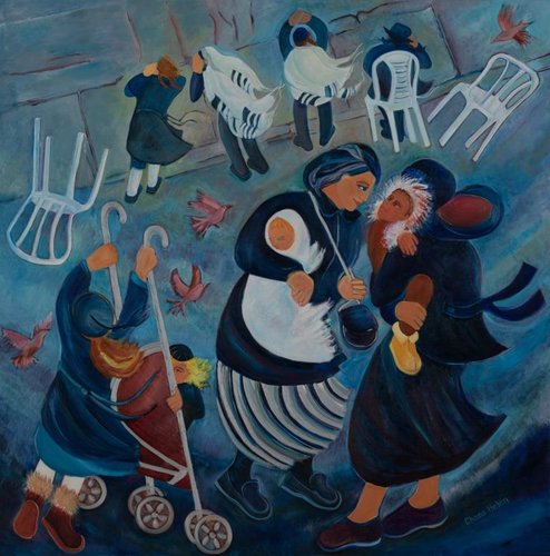 בכותל / מוזיאון היכל שלמה הגלריה19/02/2020 עד ה-30/03/2020 בכותל תערוכת יחיד לאמנית חנה הלן רוזנברג בגלריית מוזיאון היכל שלמה בירושלים אוצרת התערוכה :חוי פינגולד-דויטש רח' קינג ג'ורג' 58, ירושלים התערוכה תתקיים בין התאריכים : 19.2-30.3.2020 חנה הלן רוזנברג מאוהבת בירושלים! היא הגיעה לירושלים בשנת 2006 כדי להעמיק את לימודי היהדות שלה ואת אמונתה. היא גרה בחדר קטנטן ליד שוק 'מחנה יהודה' והרחובות שמשו לה סדנה. היא היתה מוקסמת מהמגוון העצום של אנשים שראתה, משפע הצבעים ברחובות סביבה – של בגדים ואביזרים, של בניינים, ושל השמים בעונות השנה המתחלפות - כל אלו ממלאים את פנקס הרישום הקטן שלה ומאוחר יותר היוו את הבסיס לציורי שמן, ציורים בצבעי מים ובאמנות דיגיטלית. יצירות אלה הוצגו בגלריית המוזיאון לאמנות יהודית ע"ש וולפסון, בשנת 2018. אחרי מספר שנים בירושלים, עברה חנה הלן רוזנברג לבאר-שבע, אבל אהבתה לירושלים לא שככה. שוב ושוב היא חוזרת לירושלים, להסתכל ולצייר. בתערוכתה החדשה, בכותל, נותנת חנה הלן לצופה טעימה מביקוריה בכותל. היא בקרה שם בחורף, בגשם ובשלג, היא הלכה לשם גם בקיץ. היא היתה בכותל לברכת הכהנים בשלושת הרגלים, והיתה שם בחגיגות בר מצווה. חנה הלן רוזנברג הולכת הרבה לכותל כדי להסתכל על אנשים. כמו ברחובות העיר, גם מגוון האנשים המבקרים בכותל הוא עצום – יהודים דתיים, יהודים חילוניים, חיילים, ערבים ותיירים ממלאים את הרחבה הגדולה שלפני הכותל המערבי. כל אחד מהם עם סיבתם האישית להיות שם. כל אחד בתנועה המיוחדת לו, במבע המיוחד – כי הדמויות של חנה הלן כמעט ולא עומדות בשקט. גם לא הרוח, כפי שרואים בפריסות השונות של מטריות וטליתות. חנה הלן משתמשת בהרבה צבעים בהירים, או בפלטה מוגבלת מאד, תלוי במזג האוויר. אפשר ממש להרגיש את החום והכובד בציור 'שמש בכותל' ואת הקור העולה מציורי החורף. היא ממקמת הרבה דמויות בציור, או מעט, שוב, תלוי במזג האוויר. בסצנת הקיץ יש מגוון דמויות. בסצנת החורף יש רק מקומיים! נקודת המבט שלה היא נקודת מבט של אשה – הגברים במרחק, הנשים מקרוב. יש בקע בצורת יתד בין אבני הכותל, מחיצה שמפרידה את הנשים מהגברים. הם שם ביחד, אבל בנפרד. רק ברחבת הכותל נשים וגברים איכשהו מתערבבים. כמה מהדמויות מוכרות לאלו שראו את יצירותיה הקודמות, בתערוכות, בספרים או בעיתונות. חנה הלן אוהבת את חגי ישראל! ואוהבת את ספר הספרים, התנ"ך . בתערוכה מוצגים ציורים המספרים על אירועי פורים בבאר-שבע ובירושלים, ציורי טבע החוגגים את ט"ו בשבט, ראש השנה לאילנות, ומדגישים את הדאגה הגדולה שיש לחנה הלן מהפגיעה באקולוגיה שלנו. פגיעה בטבע, זיהום אוויר ופסולת. "התורה מלמדת אותנו לא לחטוב עצי פרי, שעצים הם חשובים. אנחנו לא מעוניינים במלחמה – אנחנו רוצים לגדל דברים"! בתערוכה מוצגים ציורי קו עדינים שמשמשים לעיטור ספרי השירה של המשוררת רות פוגלמן, העוסקים בסיפורים ובדמויות מהתנ"ך. חנה הלן משתמשת בעבודותיה בטכניקות ישנות וחדשות. היא מציירת בצבעי שמן ובצבעי מים. היא רושמת בעפרון, בדיו ובצבע והיא משתמשת בטכניקות דיגיטליות (הטכנולוגיה מתפתחת: כשם שהעיפרון נכנס לשימוש אחרי גזיר הפחם, הצבע האקרילי אחרי צבע השמן - אמנות דיגיטלית היא הטכניקה החדשה. טכניקה אחת לא באה במקום האחרת. זהו כלי חדש). למרות צערה מזיהום כדור הארץ שלנו. חנה הלן מאד פעילה להגברת המודעות לבעיה בשימוש בכלים חד-פעמיים בישראל, חנה הלן רוזנברג היא אשה שמחה, אמנית שמחה ושמחה בחייה. רח': קינג ג'ורג' 58 ירושלים 02-5889010 שעות ביקור בתערוכה : א'-ה: 08:00-20:00 יום שישי 08:00-12:00 האמנית בפייסבוק: https://www.facebook.com/beer.sheva.art אתר האמנית: www.chanahelen.com טל: 050 573 1565 מיקום - מוזיאון היכל שלמה הגלריה רח': קינג ג'ורג' 58 ירושלים 02-5889010