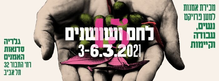 תערוכת "לחם ושושנים" ה-15 / סדנאות האמנים03/03/2021 עד ה-06/03/2021 עמותת סינדיאנת הגליל ומען – ארגון עובדים מקיימות מדי שנה תערוכה שנתית של מכירת יצירות אמנות, שהכנסותיה מוקדשות לפרויקטים המקדמים ומעודדים יציאת נשים מהמגזר הערבי לשוק העבודה. בתערוכה אשר תתקיים השנה בין התאריכים 3-6 במרץ, סמוך ליום האישה הבינלאומי, ותתקיים בסדנאות האמנים בתל אביב, יוצגו עבודותיהם של מעל 400 אמנים שתרמו אותן לקידום תעסוקת נשים ערביות בישראל. בין מאות האמנים שתרמו את עבודותיהם שיוצעו למכירה, גם כמה שמות בולטים, בהם: זויה צ'רקסקי, מיכל נאמן, פואד אגבריה, ציבי גבע, יאיר גרבוז, דוד עדיקא, מייסא דאהר, אפרת חכימי, כרם נאטור ועוד.