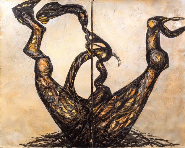 LIFE LINE / B.Y505/03/2021 עד ה-03/04/2021 במרחק פסיעה מביתה של אסתר בק קיים מרחב שבו מתרחשים דברים פלאיים - תנועות טקטוניות הדרגתיות ומלאות עוצמה משסעות שם את האדמה. השסעים חושפים את נימי הקרקע - שכבות גיאולוגיות החבויות מתחת לפני השטח. התפרצויות געשיות פתאומיות מתפיחות ומנפחות את השכבות החשופות הללו. מקשיחות ומקבעות את המעטפת החיצונית שלהן. כמו במכתשים הייחודיים לארצנו, פסגות האדמה מתבקעות וחושפות קרביים רכים. אלה נחפרים ומרוקנים. בסוף התהליך מתקבלים ממצאים גיאולוגיים פנטסטיים - עדות לסדרת פעולות טקסיות-מאגיות-קמאיות - כמו משיחת מכחול קליגרפית, תנועה פיסולית אחת רציפה - הותירה חפצים פרועים-פרומים, מלאי תנועה והתרחשות דרמטית. טבעות. מערות אפלות מלאות מסתורין. מיכלים. כלי קיבול שעוצמה בקעה מתוכם. מתוך האדמה של בק צמחו חיים - ציורי-תהליך אורגניים של אחותה, טובה סדן. בהם תנועות מכחול כמו-קליגרפיות התפרשו, התעקמו, צמחו-צנחו, חתרו למגע, שאפו אל עבר - לעיתים הגיעו, לעיתים נכשלו. בין השכבות הרבות קווי רישום לבנים, עדינים, ליריים. במבט ראשון, אלה מצטיירים בתור הנחת הצבע האחרונה-עליונה. במבט שני, נדמה שאלו חריטות-חרטות המגולפות-מקולפות מבעד לשכבות הצבע. למעשה, הקווים הללו צוירו ראשונים. הם נרשמו באמצעות נרות. שעוות הנרות דבקה במשטח ודחתה מעליה את יתר הצבעים. כך הקווים הללו, כמו זיכרון שהטביע חותמו, מנכיחים עצמם כנגד כל ניסיון לכסותם. מכלול הפעולות של סדן מתווסף לצורת עצים - שחורים - מאובנים - יער. ספק עצים ספק ישויות - גופים אנושיים בעלי נימים חשופים - נשים. הצעה להתבוננות בחוויות החיים של טובה סדן וסימני הדרך שהם הותירו. בתקופה שבה מגפה עולמית הותירה אותנו אבודים-מבודדים, התערוכה LINE LIFE של טובה סדן ואסתר בק מפיחה חיים בשממה. מיקום - B.Y5 בר יוחאי 5, תל אביב זמנים - 05/03/2021 עד ה-03/04/2021 פתיחת התערוכה - 05/03/2021, שעה - 11:00 קישור - https://https://artsinisrael.org/exhibitions/%d7%90%d7%a1%d7%aa%d7%a8-%d7%91%d7%a7-%d7%95%d7%98%d7%95%d7%91%d7%94-%d7%a1%d7%93%d7%9f-life-line-%d7%90%d7%95%d7%a6%d7%a8-%d7%99%d7%95%d7%a0%d7%aa%d7%9f-% |