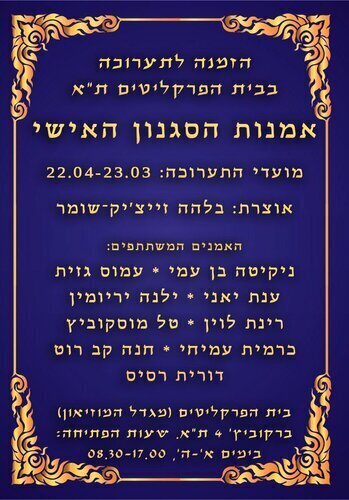 אמנות הסגנון האישי / בית הפרקליטים (מגדל המוזיאון)23/03/2021 עד ה-22/04/2021 תערוכה קבוצתית בבית הפרקליטים (מגדל המוזיאון) ת”א