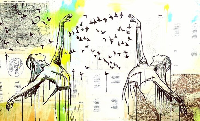 ריקוד שלום / גלריה GH גבעת חביבה לאמנותטלפון - 04-637282 01/01/2022 עד ה-26/02/2022 בשבת ה - 1.1.22 תיפתח בגלריה GH גבעת חביבה לאמנות, תערוכה זוגית שנולדה מתוך שיח וההשראה מעולם הריקוד בין שני אמנים שנפגשו ותקשרו במרחב הרשת. קרן פרגו היא אמנית ישראלית הרוקמת ורושמת בדיו שחורה על גבי רקע של דפים מספרים ישנים מעולמות השירה העברית, עולם הצומח, ומפות גאוגרפיות; אשקן רוא'אי הוא צלם אירני שעזב את איראן דרך תורכיה והתמקם ביוסטון, טקסס, ארה"ב, ומצלם מחול ורקדנים בצילומי סטודיו מוקפדים.