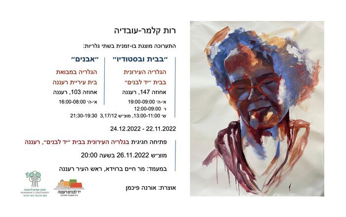 פתיחת התערוכה: מוצ"ש 26.11.2022 בשעה 20:00 ב בבית יד לבנים, רעננה במעמד מר חיים ברוידא, ראש העיר רעננה נעילת התערוכה 24.12.22 אוצרת: אורנה פיכמן הגלריה העירונית בבית יד לבנים, אחוזה 147, רעננה שעות הביקור: ימים א'-ה' 9:00 - 19:00; ימי ו' 9:00 - 12:00; שבת 11:00-13:00 הגלריה במבואת בית עיריית רעננה, אחוזה 103, רעננה שעות הביקור: ימים א'-ה' 08:00 - 16:00 בגלריה העירונית בבית "יד לבנים" יוצגו מספר סדרות של ציורים: דיוקנאות אישיים ושל בני המשפחה; הבנות; האמן בסטודיו; טבע דומם ופרחים ורישומי מודל נשי בעירום. תערוכה זו נושאת את השם: "בבית ובסטודיו". בחללי הגלריה במבואת בית העירייה מוצגת סדרת ציורי טבע מופשט לצד מספר עבודות קרמיות בתערוכה הנושאת את השם: "אבנים". שני מוקדי התערוכה מעלים על נס את יצירתה האמנותית המגוונת משנת 2004 ועד היום. קלמר-עובדיה הכשירה ומכשירה עד היום עצמה בלימודי ציור במסגרות פורמליות ובלתי פורמליות, כשבמקביל להן היא מאתגרת את עצמה, באופן קבוע ובלתי מתפשר, בתרגולי שליטה במכחול; בבחינה, בהבנה ובמיצוי של נושא אותו היא בוחרת לצייר; בתרגום האובייקט הנבחר על ידה לציור על גבי הפורמט בפרופורציות המדוייקות; בבחינת הפרספקטיבה של הדימוי המתואר ויישום תלת-ממדיות בו על ידי משחקי אור וצל המתקבלים באמצעות כתמי צבע וכדומה. קלמר-עובדיה נעזרת, כבר בשלב הסקיצה של כל ציור שלה, בתצלומים שערכה לדימוי הנבחר לציור. על פיהם היא רושמת את הדימוי על גבי הפורמט בגירים מסיסים במים. התצלומים משמשים אותה גם בהמשך עם הנחת הצבעים. התצלומים מהווים כלי עבודה אלמנטרי ומעין אבני בוחן לבדיקה עצמית שלה כיוצרת, אם התוצאה שהתקבלה על מצע הציור תורגמה על ידיה נכון, ותצביע על שליטה אמנותית משביעה רצון כמו גם על התאמתו של המדיום בו בחרה לתאר את הדימוי. היכולת ליצירה אמנותית היא, כידוע, מולדת וגם נרכשת. כל אדם יכול להפוך לאמן בתנאי שיש לו רצון ללמוד, לתרגל ולא להכנע לכישלונות. חוקרי אמנות סוברים שהאמן נמצא בבסיס הפרמידה, והצופה בעבודותיו נמצא בראשה, שכן יצירת אמנות הופכת לכזו רק בראשו של הצופה. ללא הימצאותו של הצופה – היצירה תהיה לא יותר מאשר בד או נייר ועליו צבעים. הפוטנציאל היצירתי של האמן המיישם מיומנויות ביצוע, העמקה והכשרה של כללים מקצועיים ושיטות טכניות באמנות – רק מתחזק ומביא אותו לידי חשיבה ביקורתית, המעלה אותו לראש הפרמידה, ואכן קלמר-עובדיה מכוונת באופן מודע ומעשי את דרכה למקום זה. רות קלמר-עובדיה ילידת קיבוץ בארי, בוגרת לימדי אמנות בסטודיו עין החורש, בסטודיו לאמנות רעננה, במכון אבני ובבית הספר של אגודת האמנים באלכסנדריה,ווירגיניה. הציגה תערוכת יחיד ברעננה והשתתפה במספר תערוכות קבוצתיות בישראל ובארצות הברית. מתגוררת ברעננה. מיקום - גלריה עירונית יד לבנים הגלריה העירונית בבית יד לבנים, אחוזה 147, רעננה