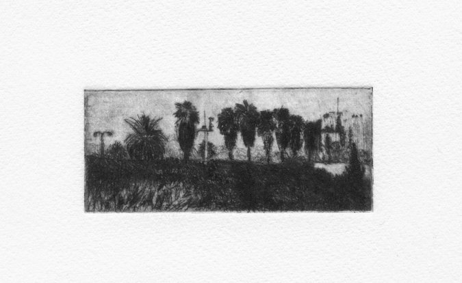 עבודותי בהדפס עוסקות במראות הטבע הישראלי במרחב העירוני, המפגש היום–יומי בין עצי הברושים, הדקלים, הפיקוסים, שיחים וצמחיה אל מול האדריכלות מנקודת מבט של המשוטט המתבונן למולם.