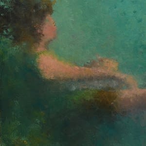 נועה ארבל – אישה יושבת ברקע טורקיז